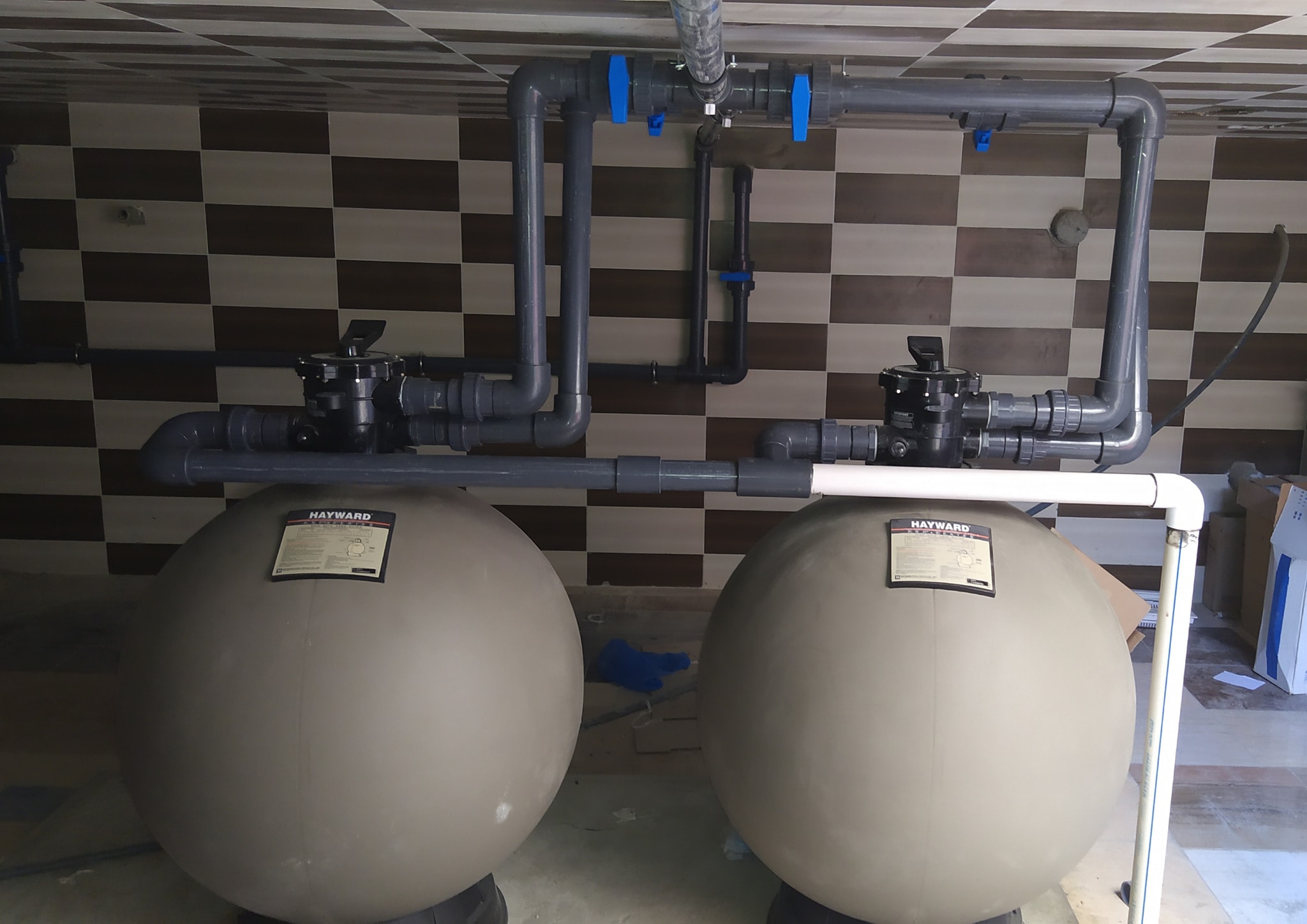 "Mechanical works for the swimming pool inside a well-known compound in Alexandria include mechanical connections and the chlorination and filtration system. Advanced Company is your optimal choice for designing and implementing swimming pools. You can also visit the official website of the company to explore the services we can offer you at competitive prices."