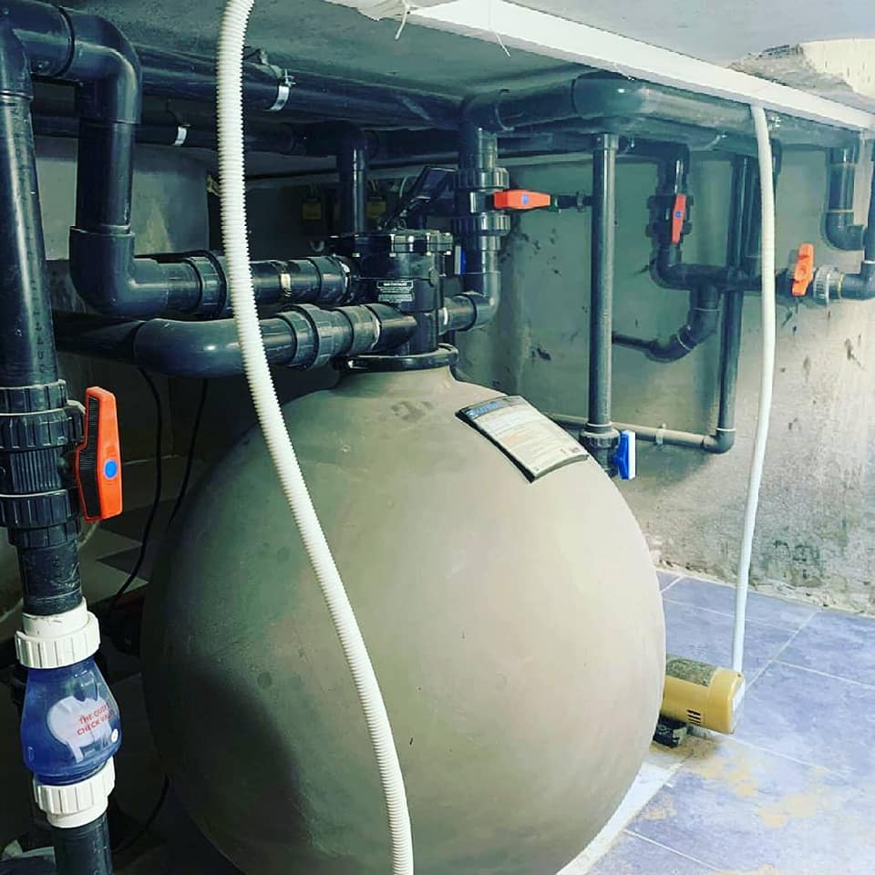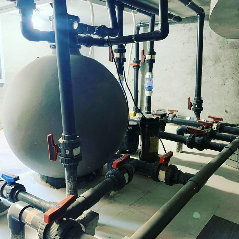 The mechanical works for the pump room have been completed, along with the supply of complete equipment and accessories, and treatment works for an 80 cubic meter swimming pool. We are pleased to serve you in implementing all the works related to swimming pools, whether it's supplies or complete constructions.
