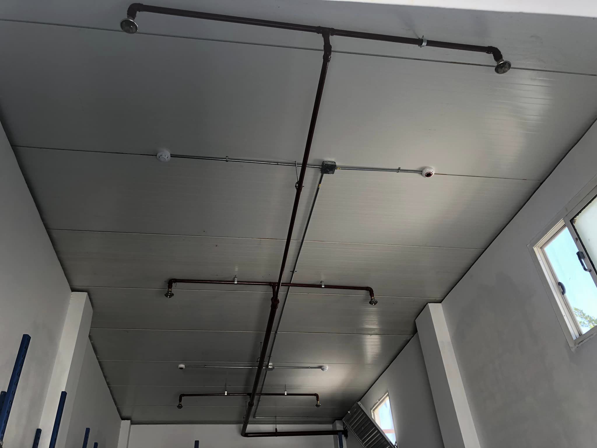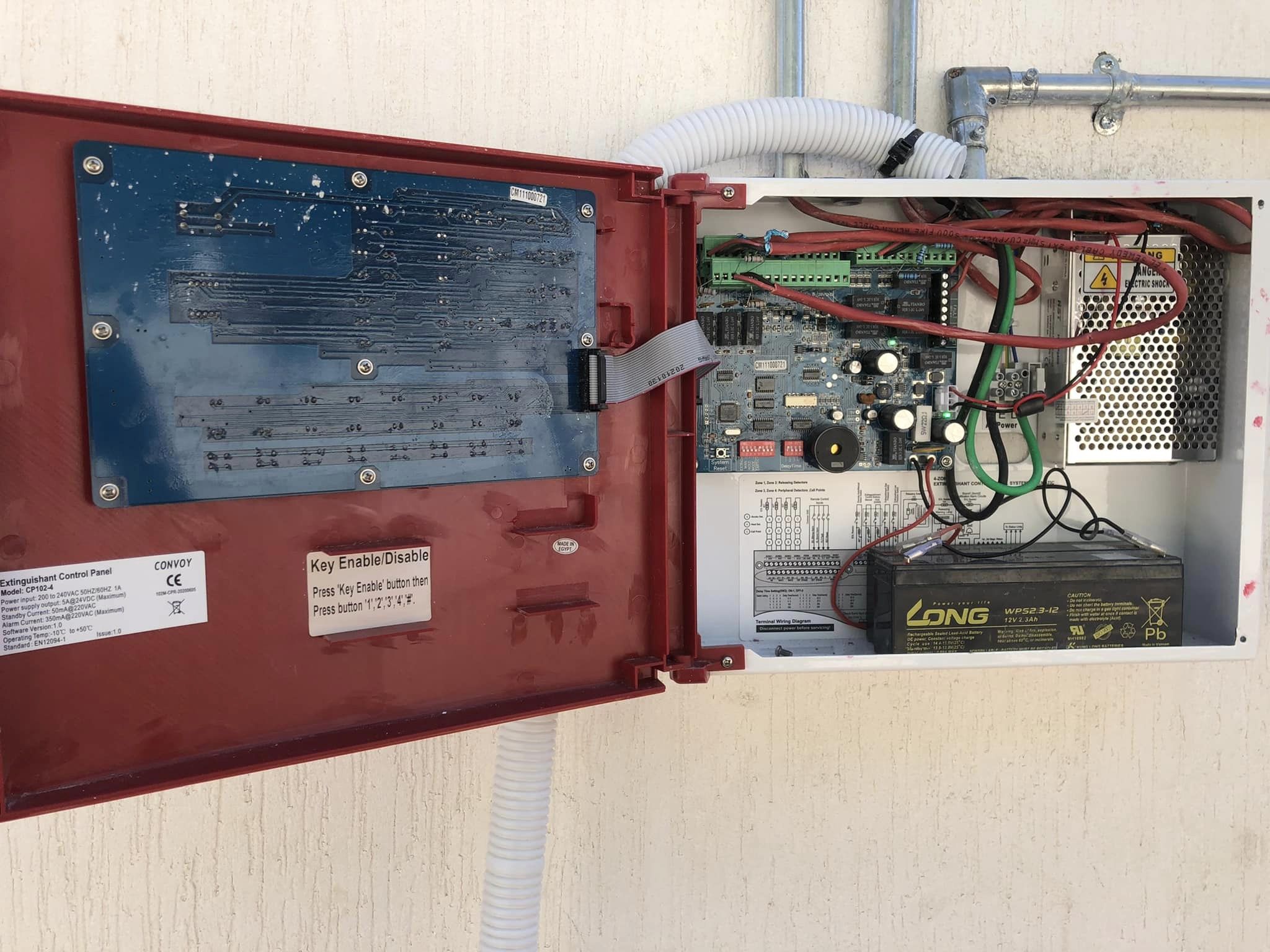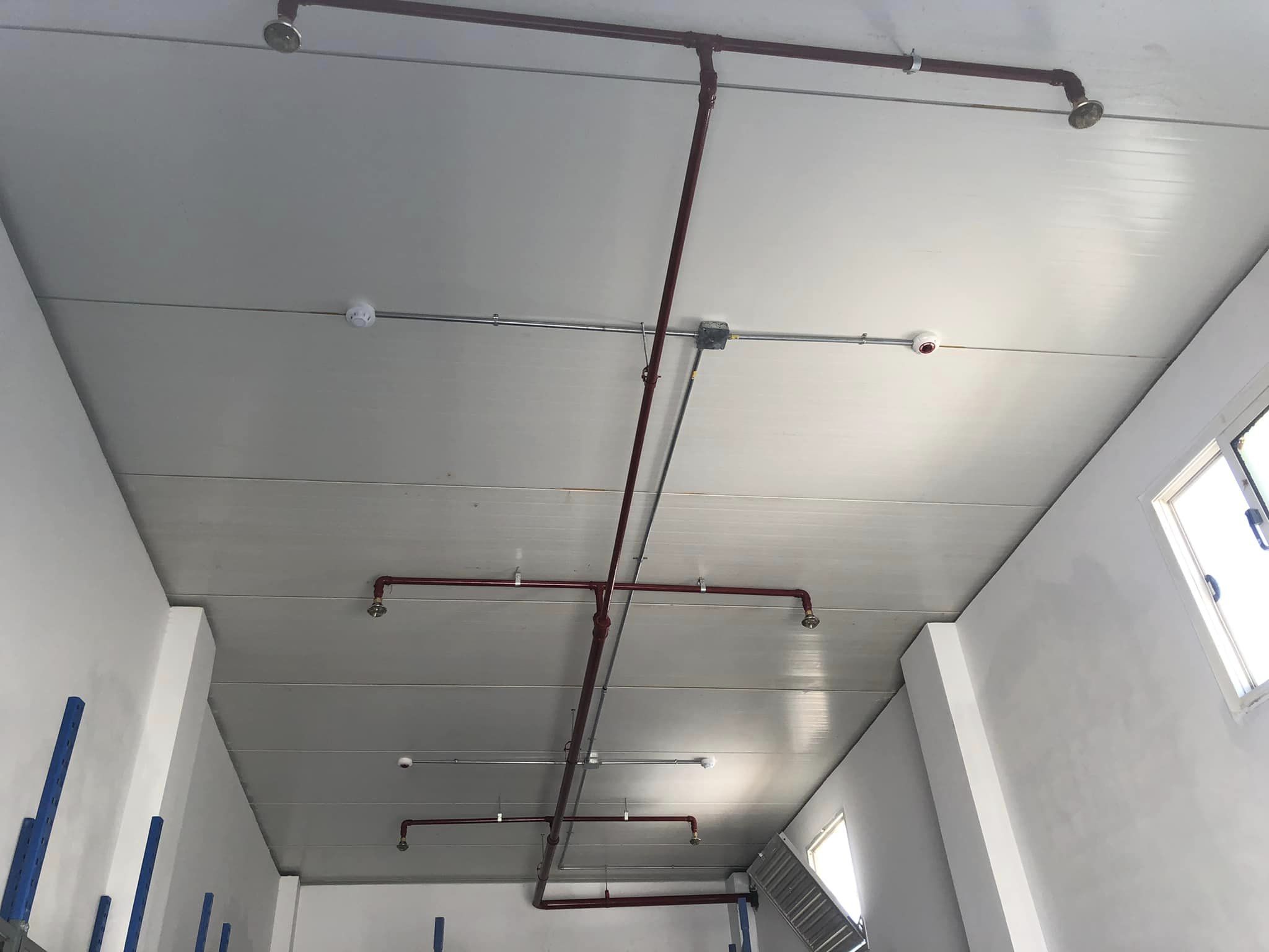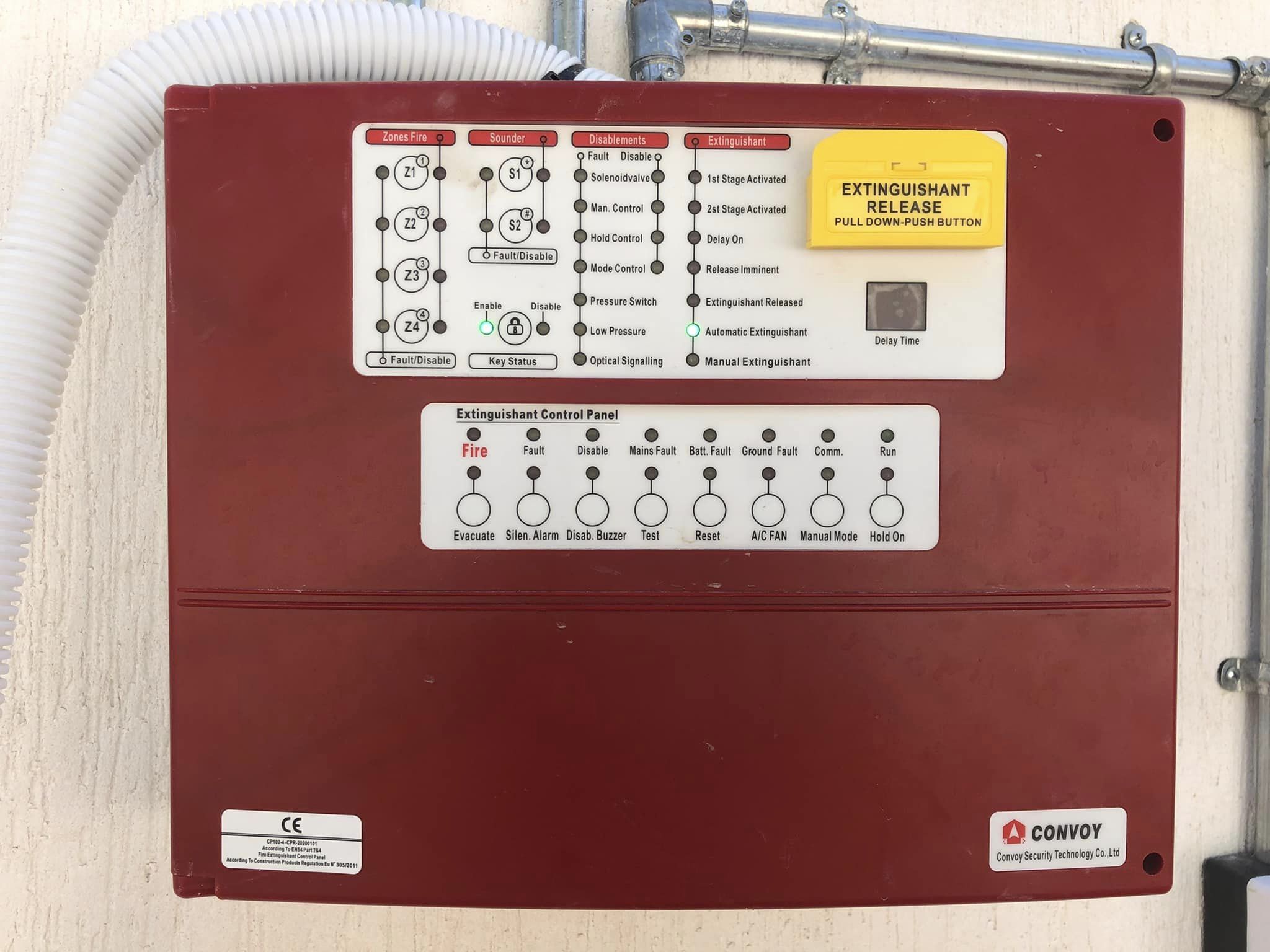 - Alarm system consists of heat and smoke detectors and alarm bill and control panel